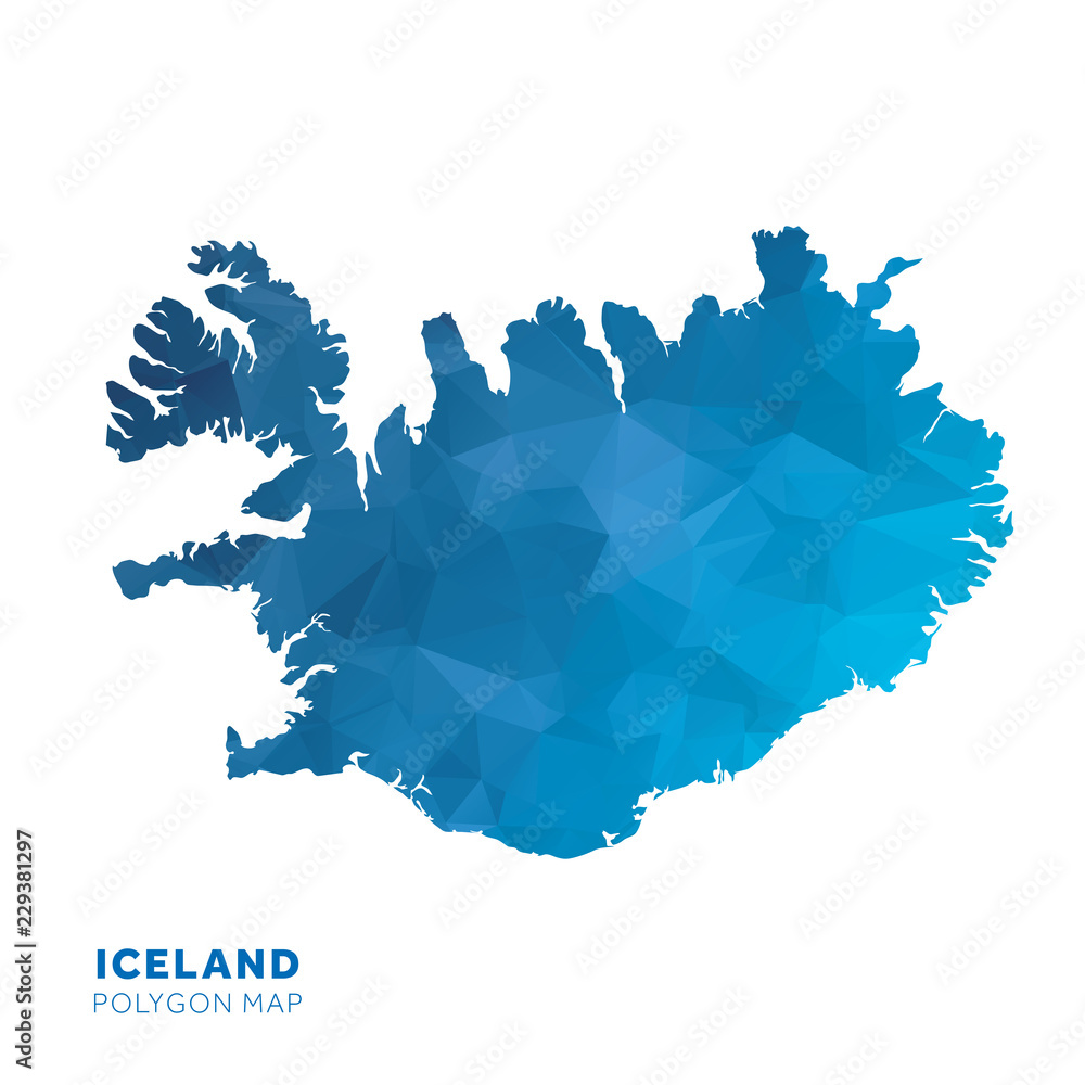 Matrica Map of Iceland. Blue geometric polygon map.