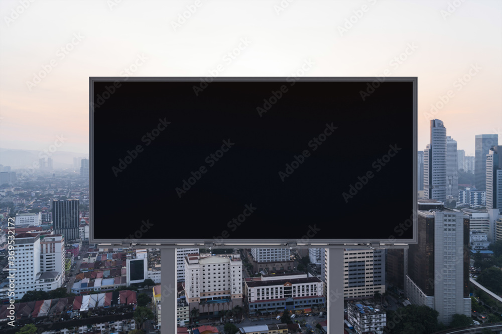Matrica Blank black road billboard with Kuala Lumpur cityscape background at sunset