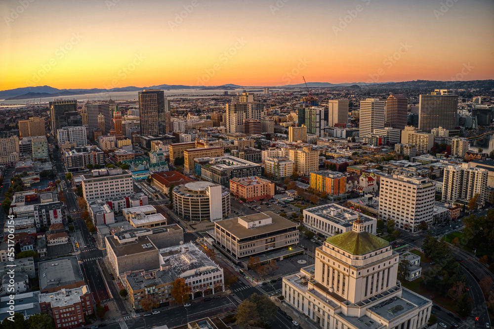 Matrica Aerial View of Downtown Oakland, California at Dusk