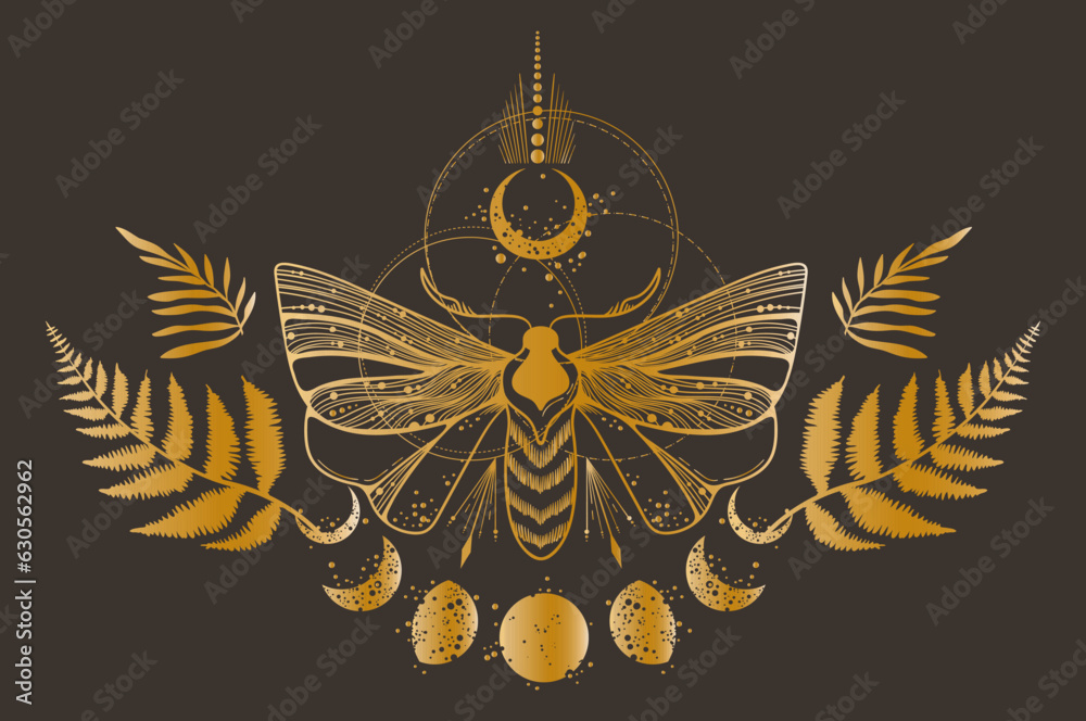 Matrica Magic celestial butterfly, fern leaves, plants and moon in golden foil texture c