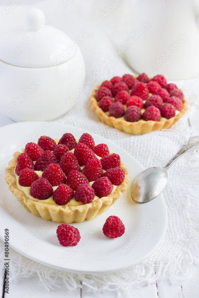 Matrica tart with fresh raspberries