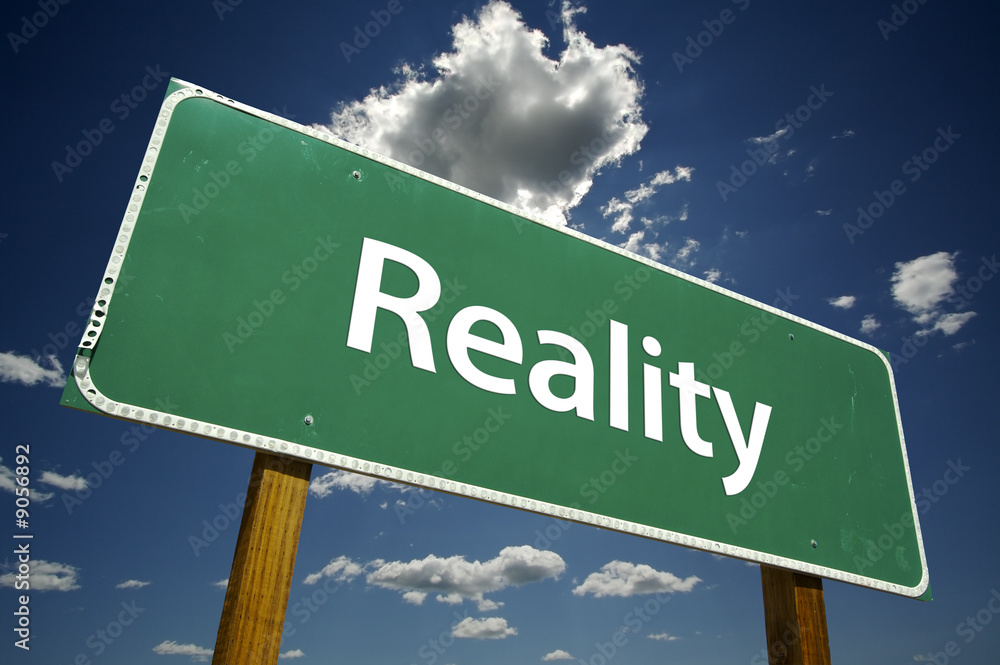 Matrica Reality Road Sign with dramatic clouds and sky.
