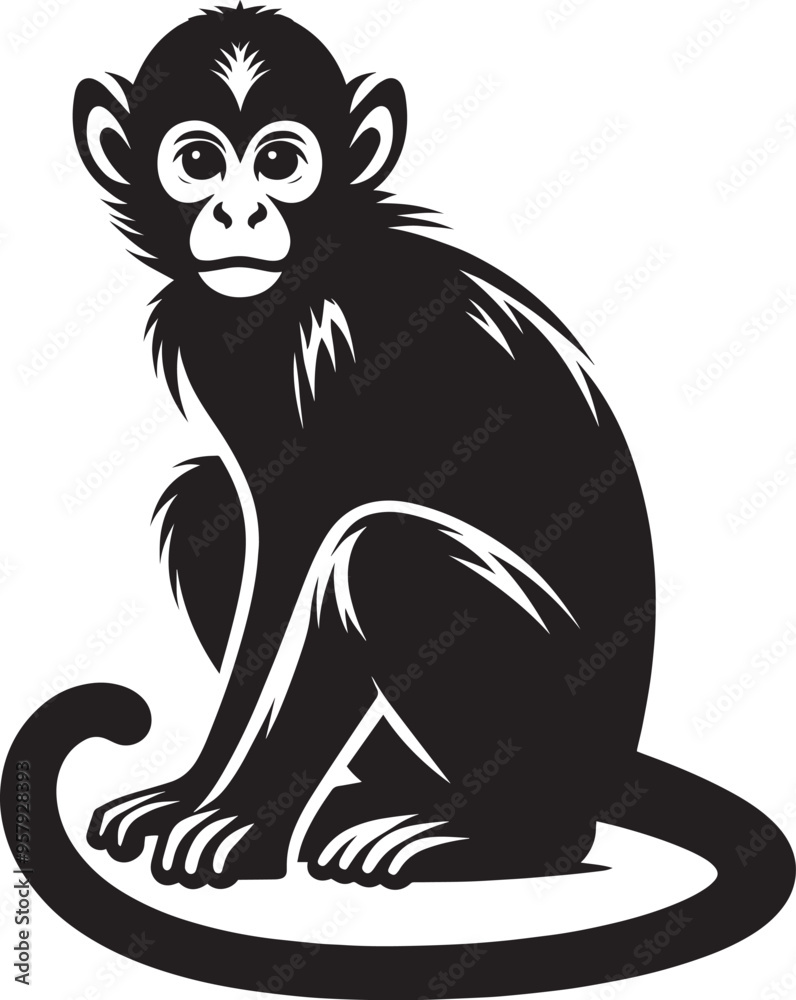 Matrica Monkey animal Silhouette isolated on white background Minimalist monkey vector i