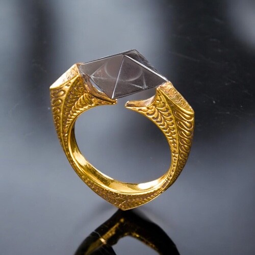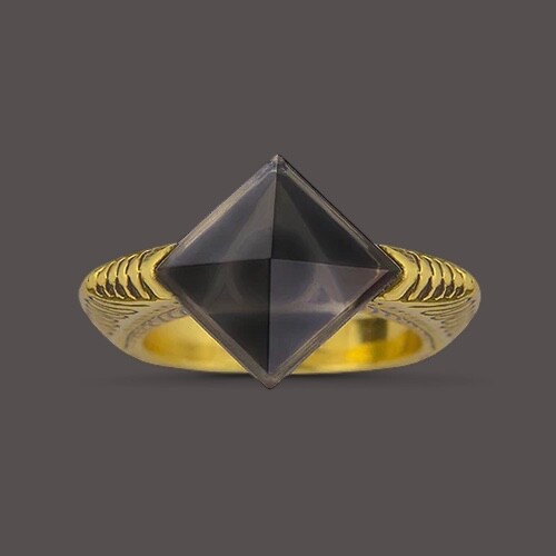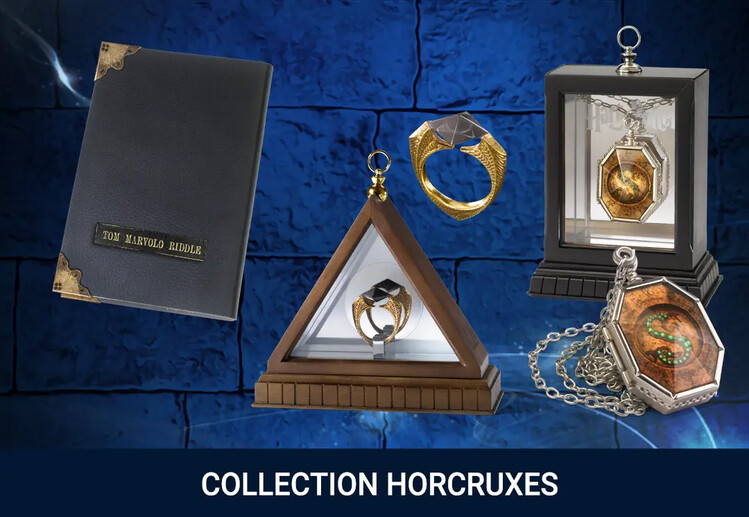 Marvolo Gaunt hiteles gyűrűje Lord Voldemort ikonikus horcruxának részletes másolata, a feltámadás kövével foglalva, amelyen a Halál ereklyéje szimbólum látható. A gyűrű fémből készült, és egy elegáns, fából készült gyűjtőtokban kerül forgalomba. A méret körülbelül egy amerikai 10-es méretnek felel meg.