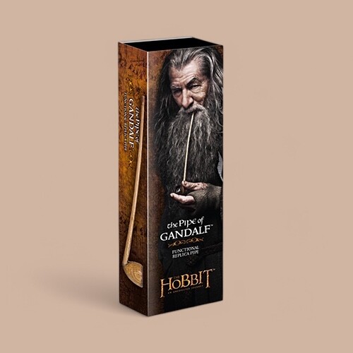 Gandalf pipájának teljesen működőképes luxus másolata A hobbitból: Egyetlen darab teakfából készült, és körülbelül 23 cm hosszú. 18 éven felüli felhasználók számára készült.