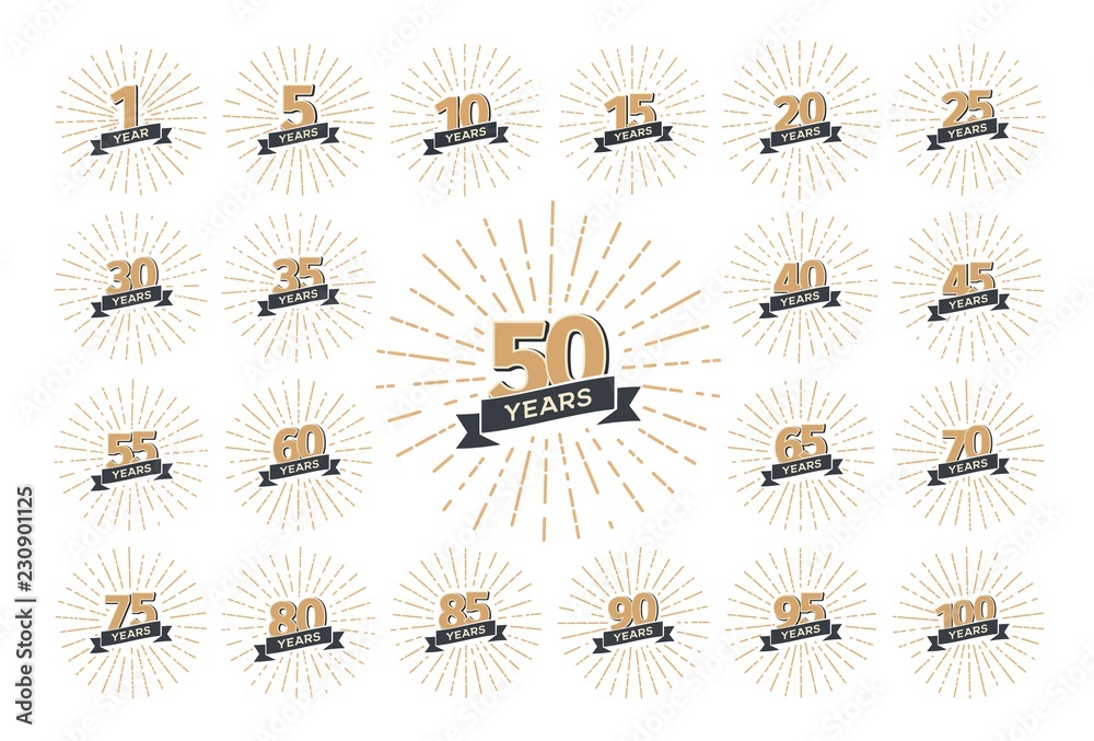 Vászonkép Set of isolated anniversary logo numbers with ribbon and fireworks vector illustration