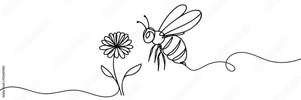 Vászonkép Continuous one line drawing of flaying bee