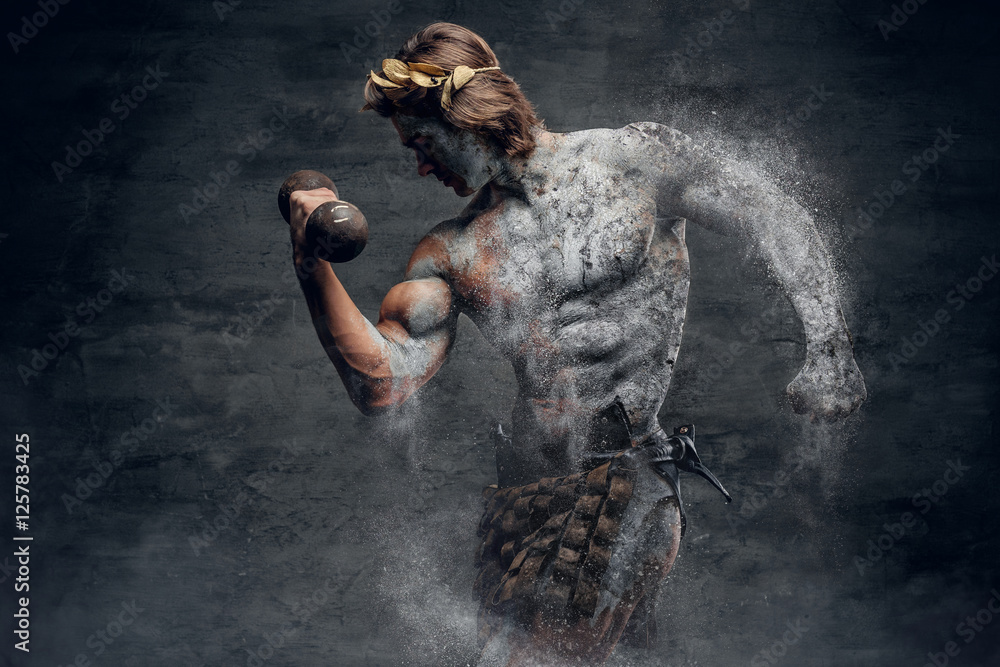 Vászonkép Ancient Greek male sportsmen holds dumbbell.