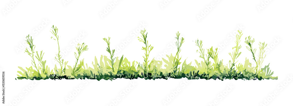 Vászonkép Side view watercolor bush and grass bander, vector illustration for garden layout, architecture plan, section design, elevation element, environment, landscape, png