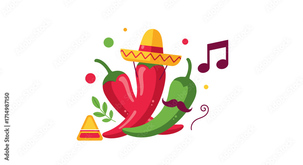 Vászonkép Festive Chili Peppers with Sombrero and Mustache Celebrating Mexican Culture