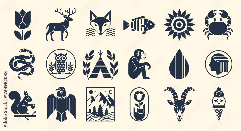 Vászonkép A modern collection of bold geometric animal and nature icons