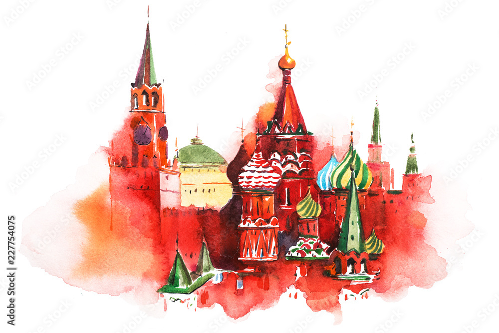 Vászonkép Moscow Russia Red square Saint Basil Cathedral Watercolor