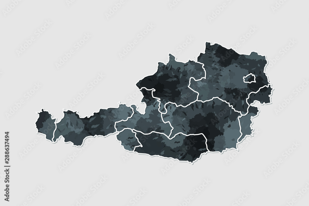 Vászonkép Austria watercolor map vector illustration of black color with border lines of d