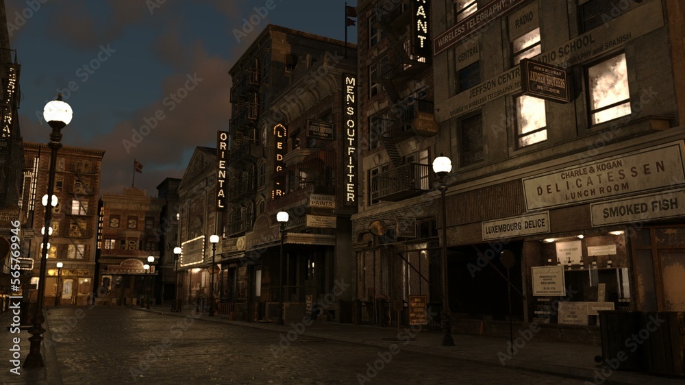 Vászonkép 3D-illustration of a history streer of the roaring twenties 1920