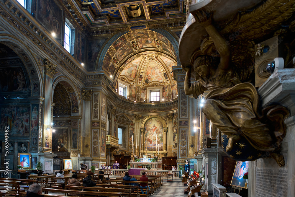 Vászonkép Mass at San Marcello al Corso, baroque styled church in Rome, Italy