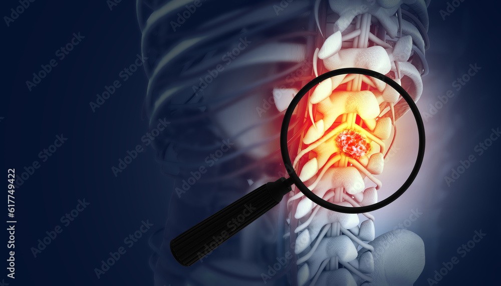 Vászonkép Magnifying glass showing the spine cancer or spinal tumor disease