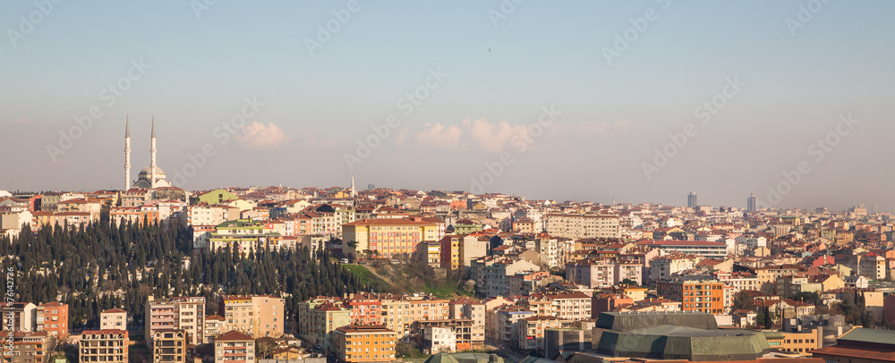 Vászonkép Colorful houses and mosque on a hillside in Istanbul, Turkey
