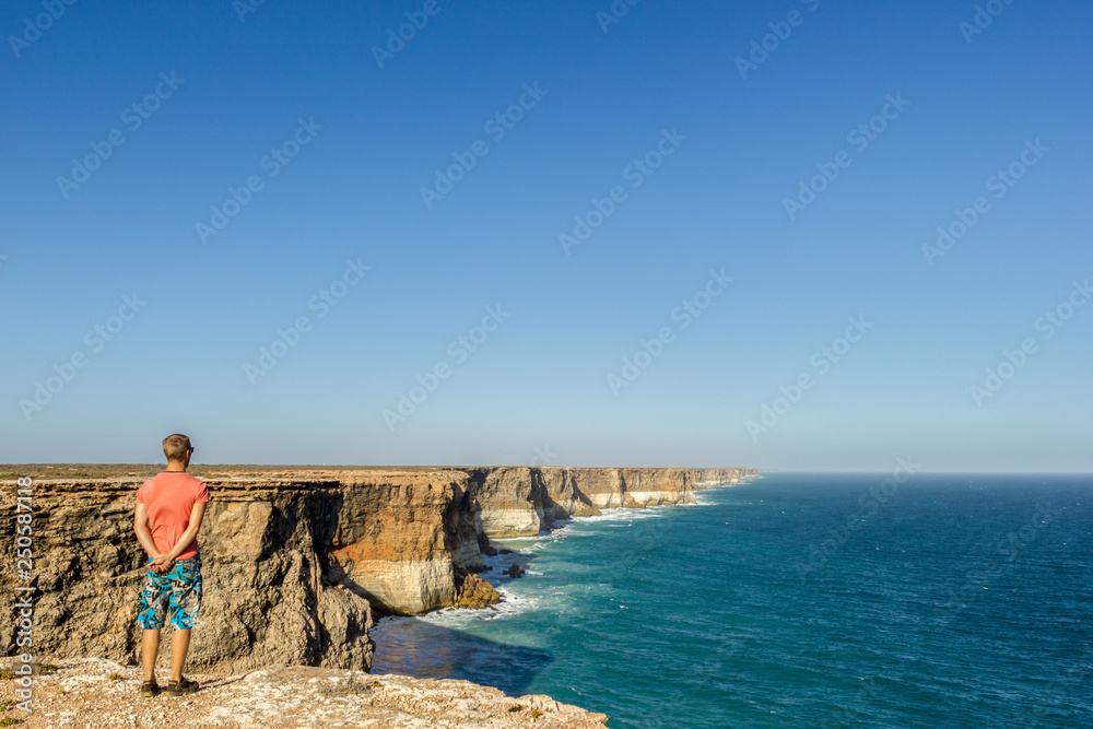 Fényképezés young man standing at the beautiful and famous Great Australian Bight Lookout at